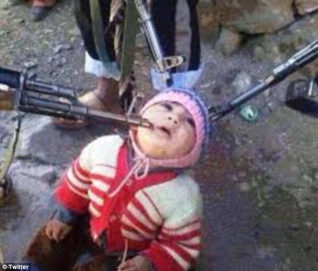 Μάλιστα, όπως φαίνεται στη φωτογραφία στο πρόσωπο του παιδιού είναι ζωγραφισμένος ο τρόμος. Τη συγκεκριμένη φωτογραφία ανέβασε ένας υποστηρικτής του Ελεύθερου Συριακού Στρατού. Ωστόσο, η Dailymail αναρωτιέται αν απεικονίζει την πραγματικότητα ή πρόκειται για προϊόν προπαγάνδας.