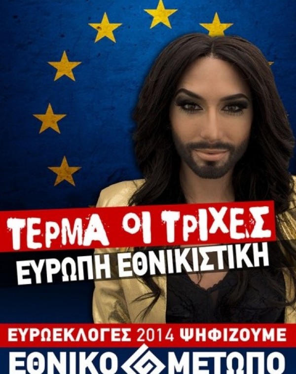 Με το σύνθημα «Tέρμα οι τρίχες. Ευρώπη Εθνικιστική» το κόμμα Εθνικό Μέτωπο κυκλοφόρησε αφίσα για τις ευρωεκλογές με πρωταγωνίστρια την νικήτρια της φετινής Eurovision, Conchita Wurst.